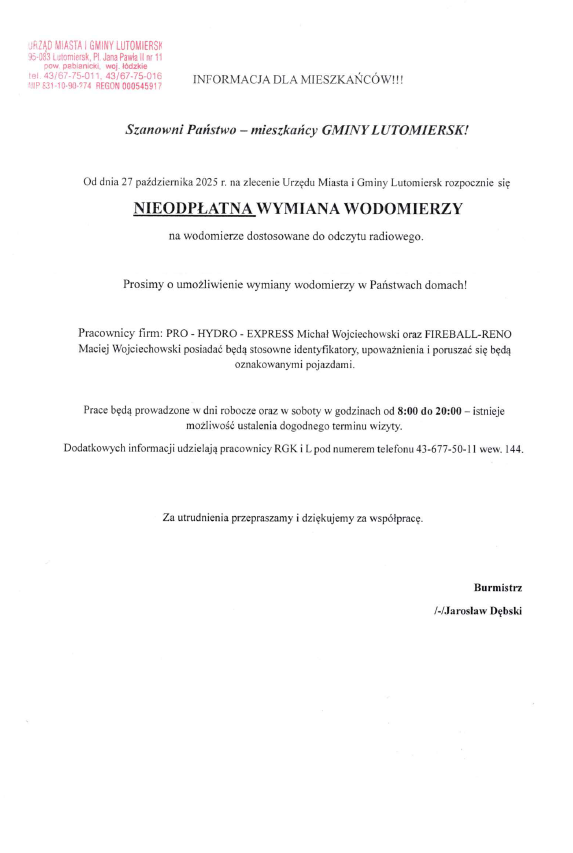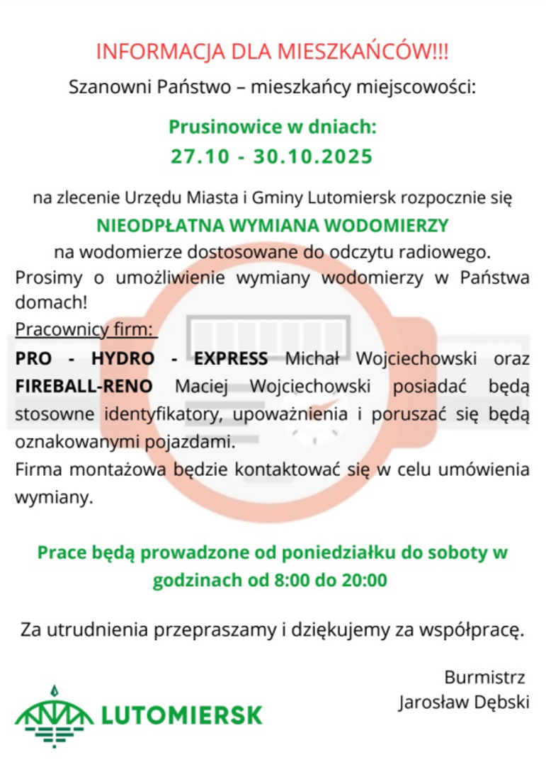 Wymiana wodomierzy u mieszkańców gminy