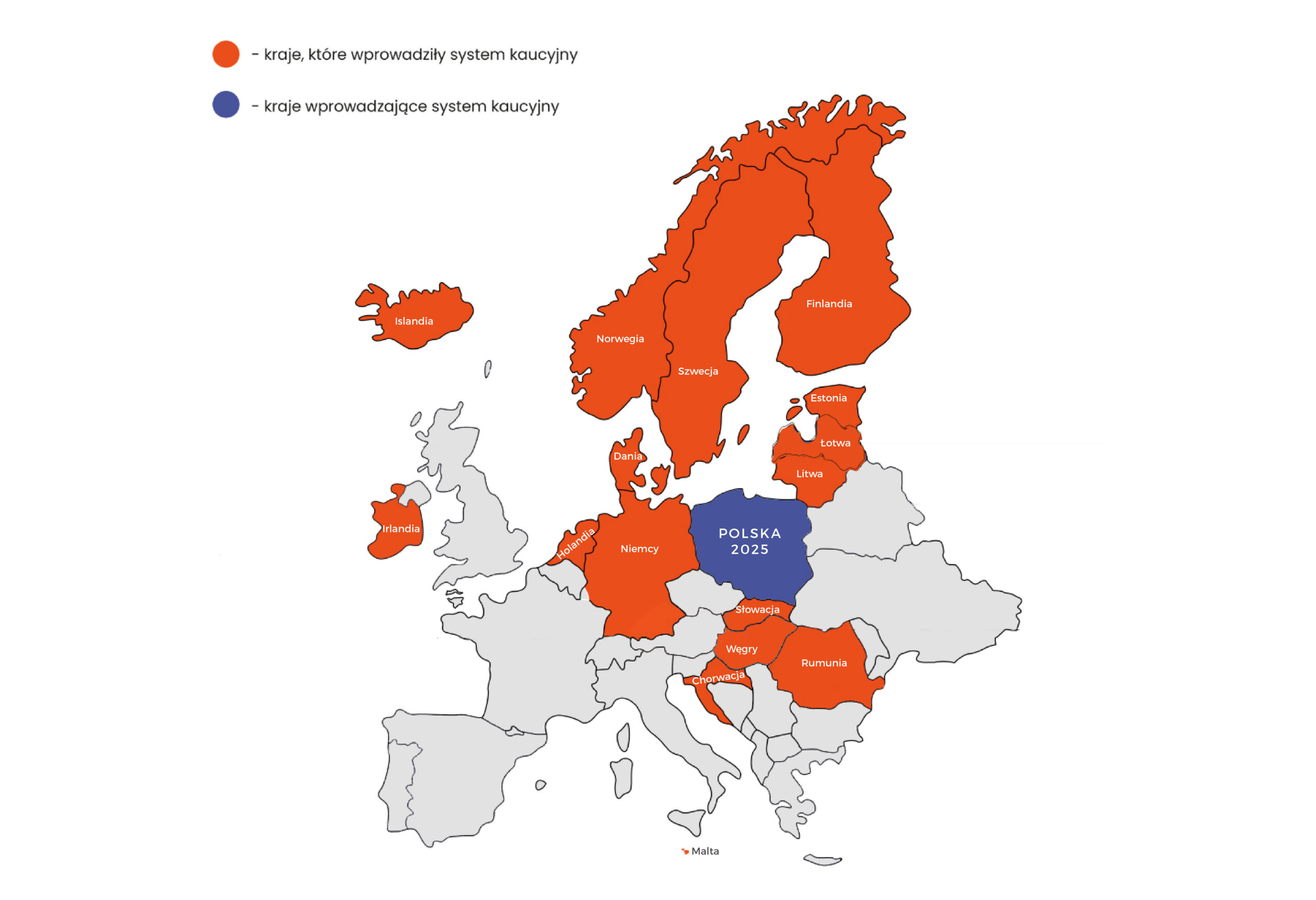 Obecnie z systemu kaucyjnego korzysta 180 mln ludzi w Europie, czyli ponad jedna czwarta populacji. Funkcjonuje on w 16 europejskich krajach: Chorwacji, Danii, Estonii, Finlandii, Holandii, Islandii, Litwie, Łotwie, Malcie, Niemczech, Norwegii, Słowacji, Szwecji, Irlandii, Rumunii i Węgrzech. Z uwagi na restrykcyjne wymogi prawne w zakresie odpadów opakowaniowych, jego wprowadzenie rozważa coraz więcej państw, m.in. Austria, Belgia, Hiszpania Portugalia i Wielka Brytania.